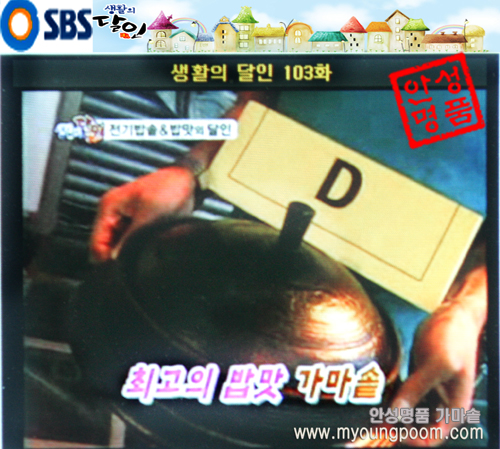 6월 18일 SBS 생활의 달인 프로그램 (밥에 달인)에서 안성명품 가마솥의 밥맛이 최고에 밥맛으로 선정되었습니다.